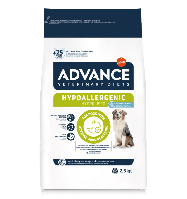 O ADVANCE VETERINARY DIETS Hypoallergenic é um alimento dietético completo clinicamente comprovado para cães adultos, indicado para a diminuição das intolerâncias a ingredientes e nutrientes.