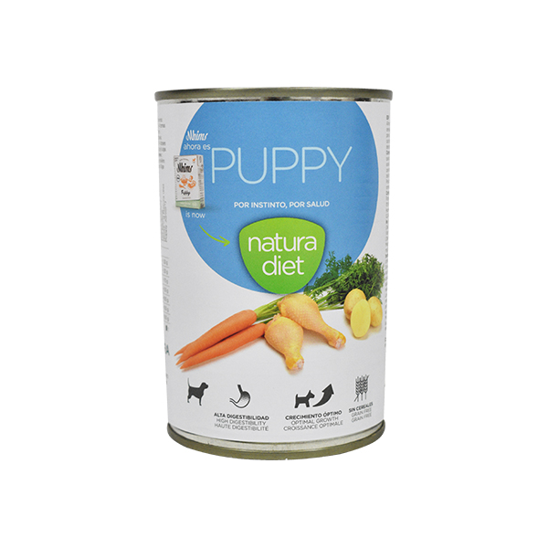 Alimento completo, natural e sem cereais, em forma de paté, concebido para responder às necessidades dos cachorros desde o desmame até à idade adulta.