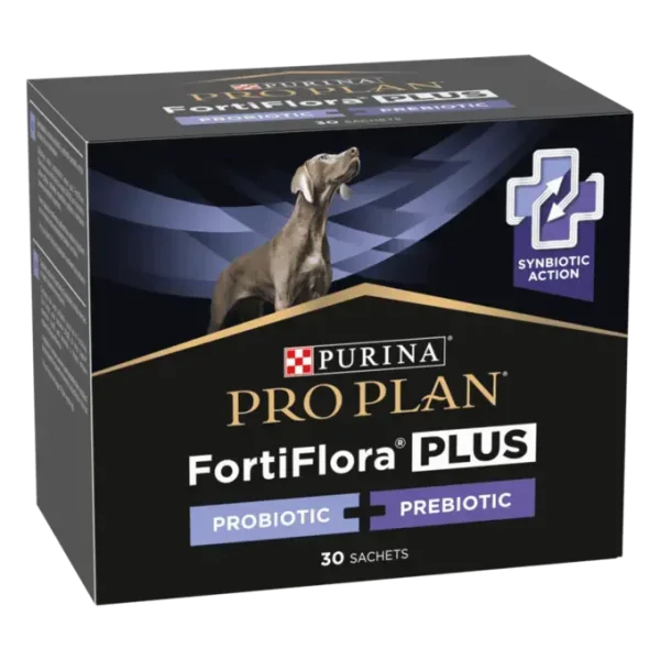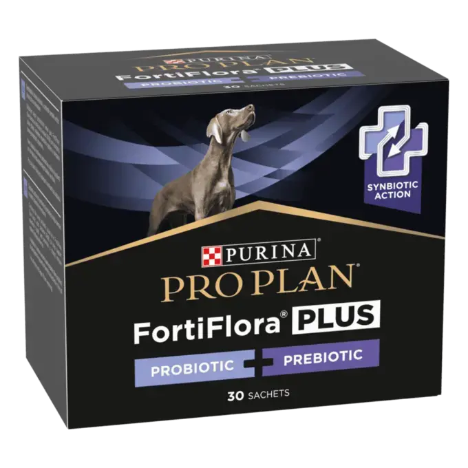 - A combinação poderosa de um probiótico único e prebiótico, comprovado como ajuda a manter um microbioma intestinal saudável e a saúde a longo prazo nos cães.