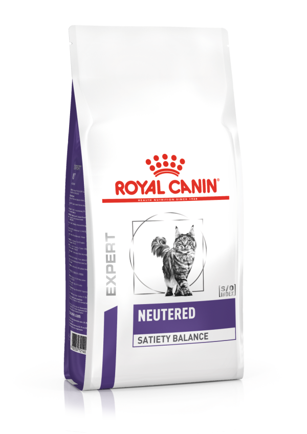 Benefícios: Controlo do apetite / Peso corporal saudável / Saúde do trato urinário O ROYAL CANIN® Neutered Satiety Balance é especialmente formulado para ajudar às necessidades nutricionais de gatos esterilizados. Esta fórmula contém um elevado nível de fibras solúveis e insolúveis que ajudam a regular o apetite do seu gato para que tenha uma sensação saciedade e satisfação após as refeições. O ROYAL CANIN® Neutered Satiety Balance tem um conteúdo calórico moderado para ajudar a manter o peso corporal ideal do seu gato e apoiar a sua saúde e bem-estar. Este alimento ajuda a criar um ambiente desfavorável à formação de cristais e cálculos urinários. A transição de um alimento para outra deve ser feita suave e gradualmente ao longo de um período de 7 a 10 dias. Siga sempre a quantidade recomendada de alimento, sobretudo se misturar alimentos secos e húmidos. Para satisfazer as preferências individuais de cada gato, está também disponível um alimento seco ROYAL CANIN® Neutered Satiety Balance.