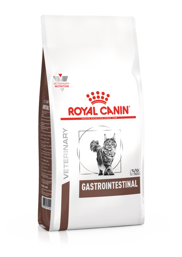 O ROYAL CANIN® Gastrointestinal é especificamente formulado para ajudar a apoiar a saúde digestiva do seu gato em casos de sensibilidades gastrointestinais. Esta fórmula de elevada digestibilidade com um equilibrado teor de fibra, incluindo prebióticos, contribui para uma digestão e trânsito intestinal saudáveis. Esta dieta contém um elevado teor energético para ajudar a reduzir o volume das refeições e diminuir a carga intestinal do seu gato para um conforto digestivo ótimo. Graças à sua fórmula altamente palatável, esta dieta é especialmente desenvolvida para encorajar a aceitação de alimentos em gatos com um apetite reduzido. Esta dieta também promove um ambiente urinário desfavorável ao desenvolvimento tanto de cálculos por estruvite como de oxalato de cálcio. Como parte da gama ROYAL CANIN® Veterinary Health Nutrition é importante que este produto seja dado ao seu animal de estimação apenas quando recomendado por um médico veterinário. A transição de uma dieta para outra para o seu animal de estimação deve ser feita progressivamente ao longo de um período de 7–10 dias. Siga sempre a quantidade correta da dose recomendada, sobretudo se misturar alimentos secos e húmidos. Para satisfazer as preferências individuais de cada gato, o ROYAL CANIN® Gastrointestinal está também disponível como alimento húmido com fatias finas em molho.