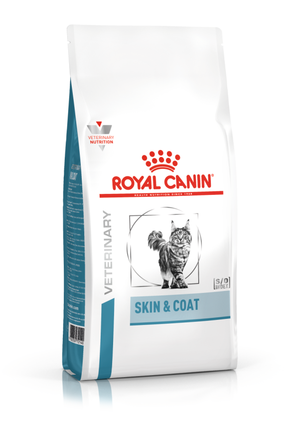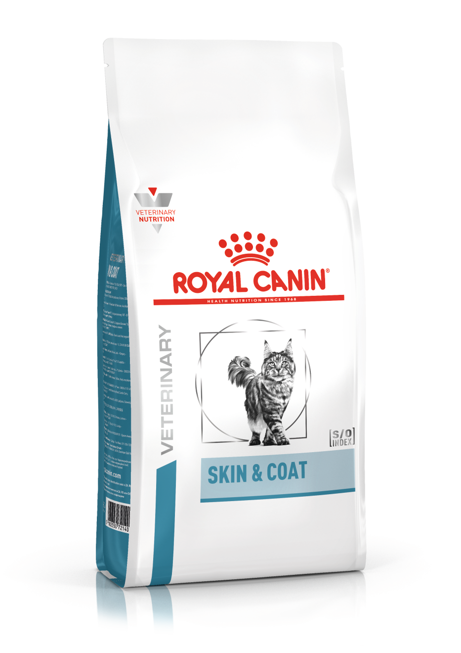 ROYAL CANIN® Skin & Coat é especificamente formulado para ajudar a apoiar os gatos com sensibilidades cutâneas, tais como dermatites e maior queda de pelo. Graças a uma especial combinação de nutrientes, esta fórmula ajuda a manter o papel de barreira protetora natural da pele do seu gato. Enriquecida com ácidos gordos Ómega-3 EPA e DHA para ajudar a apoiar uma pele saudável e nutrida e uma pelagem brilhante. Esta dieta tem um elevado teor de proteínas para ajudar o seu gato a manter uma massa muscular ideal. Esta dieta também promove um ambiente urinário desfavorável ao desenvolvimento de cristais e cálculos de estruvite e de oxalato de cálcio. Como parte da gama ROYAL CANIN® Veterinary Health Nutrition, é importante que este produto seja dado ao seu animal de estimação apenas quando recomendado por um médico veterinário. A transição de uma dieta para outra para o seu animal de estimação deve ser feita progressivamente, ao longo de um período de 7–10 dias. Siga sempre a quantidade correta da dose recomendada, sobretudo se misturar alimentos secos e húmidos. Para satisfazer as preferências individuais de cada gato, ROYAL CANIN® Skin & Coat está também disponível como alimento húmido com fatias finas em molho.